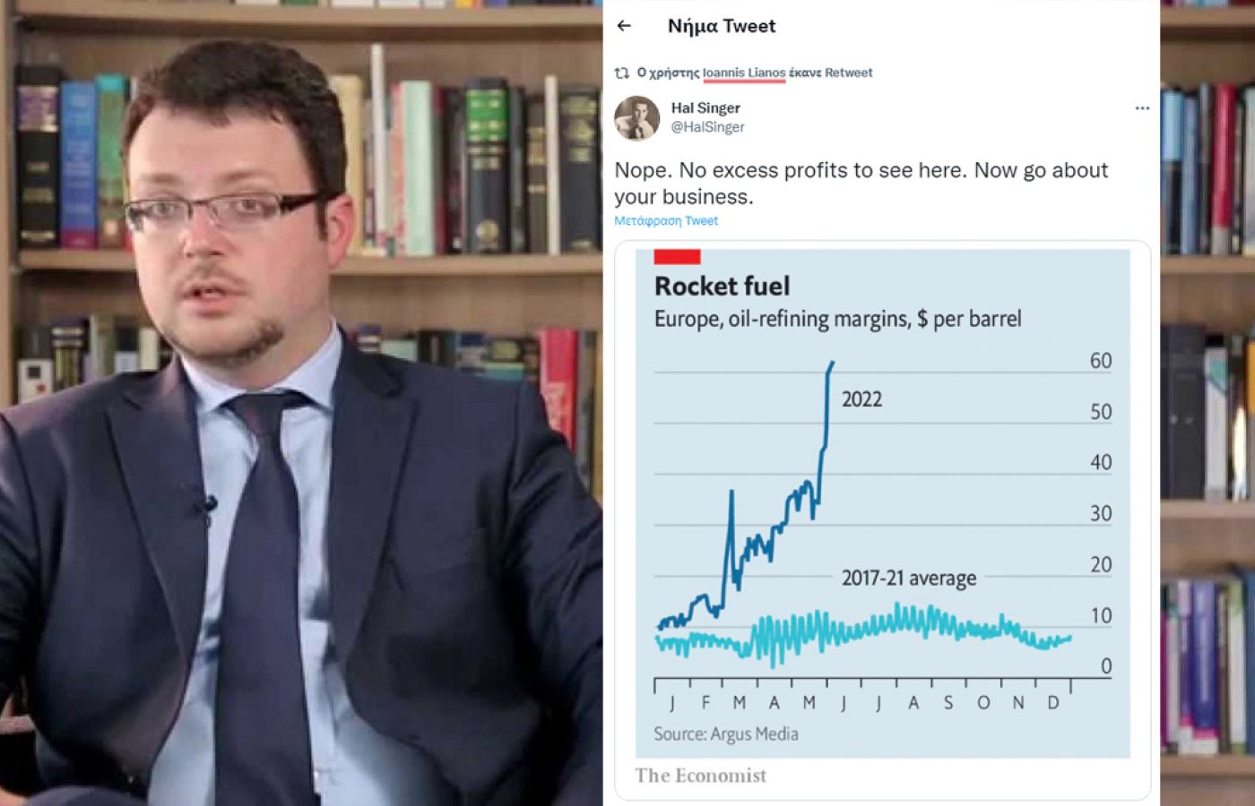 Το ενδιαφέρον είναι ότι αυτό το δηκτικό τιτίβισμα το «ριτουιτάρει» ο πρόεδρος της Επιτροπής Ανταγωνισμού Ιωάννης Λιανός, που σε διαδοχικές αναρτήσεις του στο Twitter προαναγγέλλει επίσης ότι «η Επ.Αντ. ολοκληρώνει τις επόμενες εβδομάδες μία μελέτη χαρτογράφησης για την κατάσταση ανταγωνισμού σε όλη την αλυσίδα πετρελαιοειδών (πετρέλαιο κίνησης και θέρμανσης) από τα διυλιστήρια στη λιανική…».