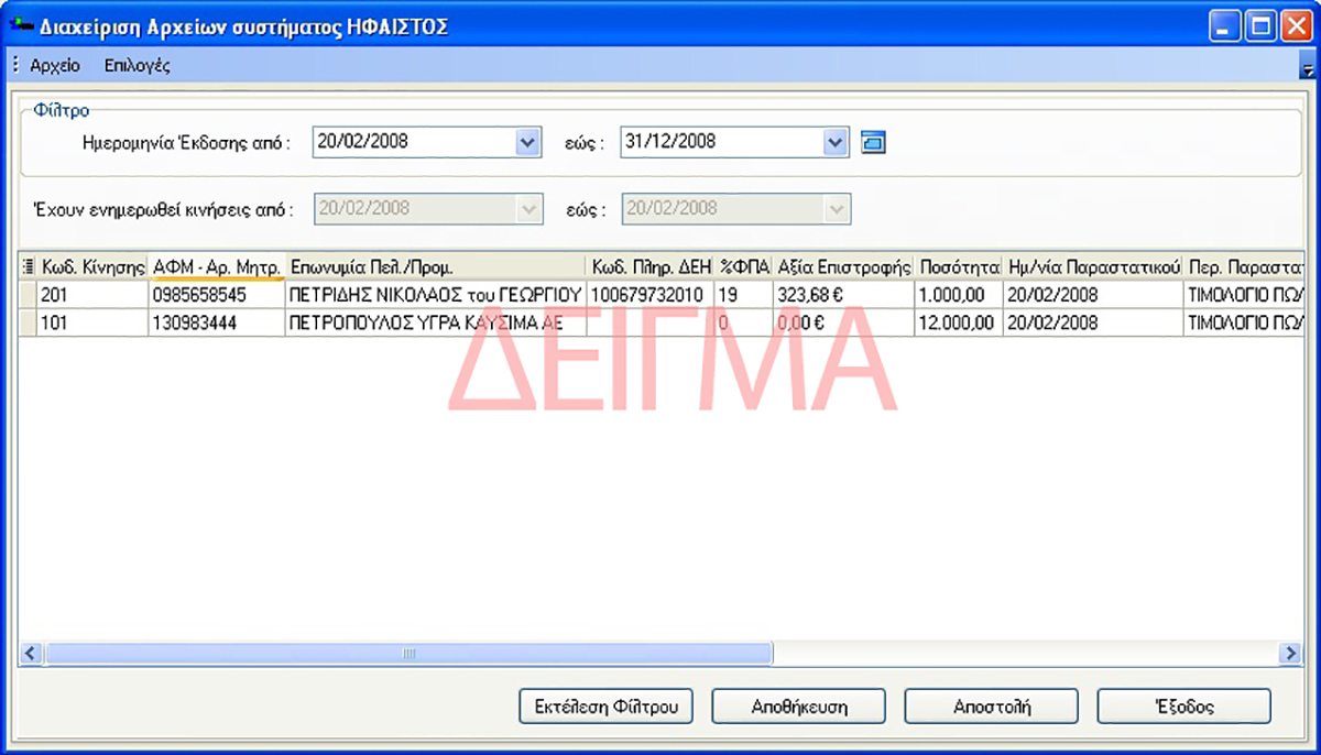 Θα σταλεί και σχετικό ενημερωτικό μήνυμα από ΗΦΑΙΣΤΟΣ.
