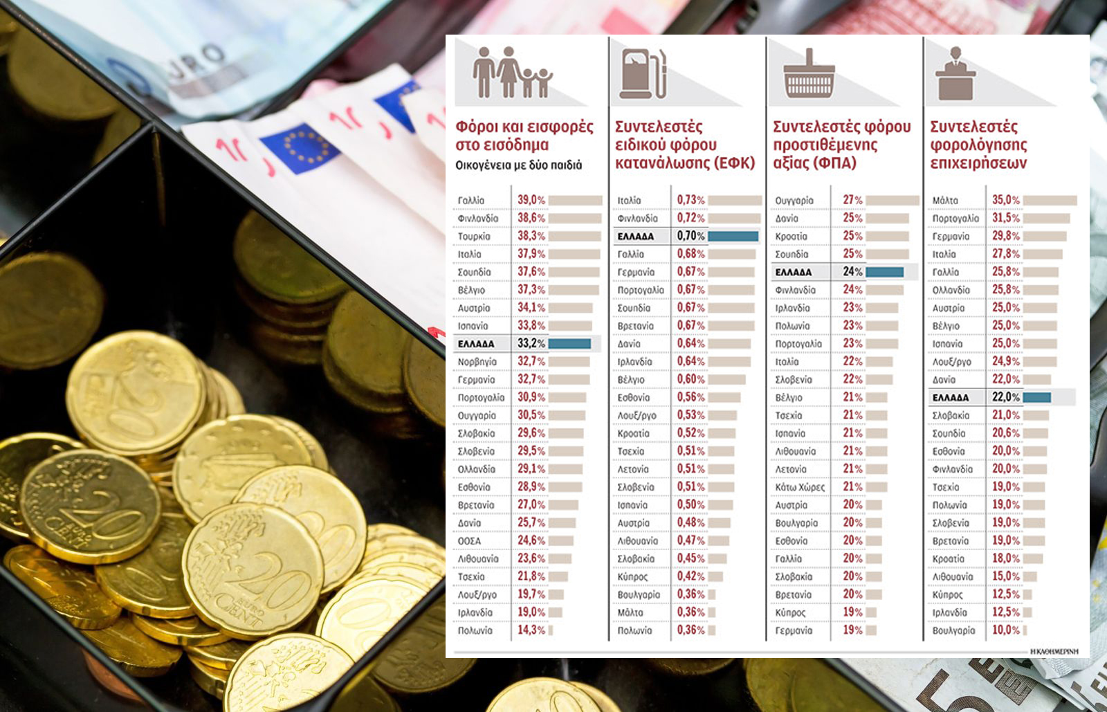 Μόνο η Ουγγαρία, η Κροατία, η Δανία και η Σουηδία έχουν υψηλότερο ΦΠΑ από την Ελλάδα.