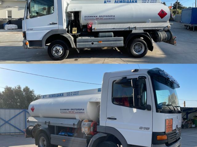 Πωλείται βυτιοφόρο υγρών καυσίμων Mercedes Benz ATEGO 815, λευκό, μοντέλο 2000 με καύσιμο πετρέλαιο. Η δεξαμενή είναι κατασκευασμένη από αλουμίνιο. Το βυτίο είναι χωρητικότητας 5800 λίτρων (ογκομέτρηση) χωρισμένο σε τρία διαμερίσματα και περιλαμβάνει τρεις καρούλες των 1″, 1 3/4″ και 1 1/2″. Έχει 371.000 χιλιόμετρα και το μικτό του βάρος είναι 7.500. Όλα τα πιστοποιητικά του οχήματος είναι σε ισχύ (Λεμπιδάκης Ιωάννης 6976777140)